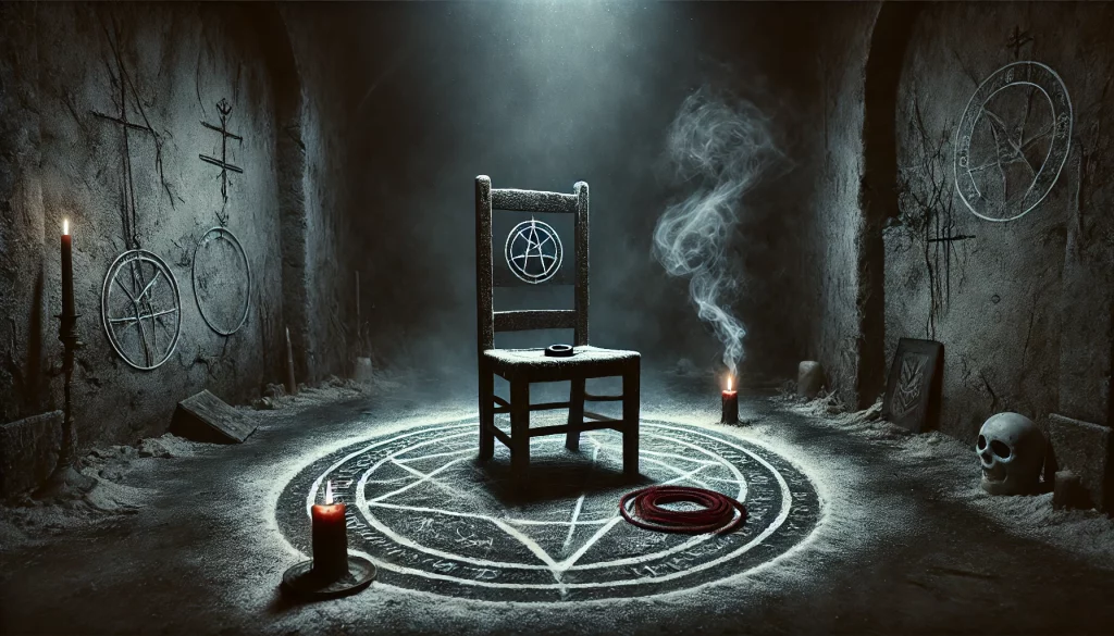 Das Ritual entstand angeblich aus dem Versuch, durch den Stuhl Antworten oder Macht vom Teufel zu erlangen. Doch es heißt, wer ihn ruft, riskiert, von der Dunkelheit verschlungen zu werden.